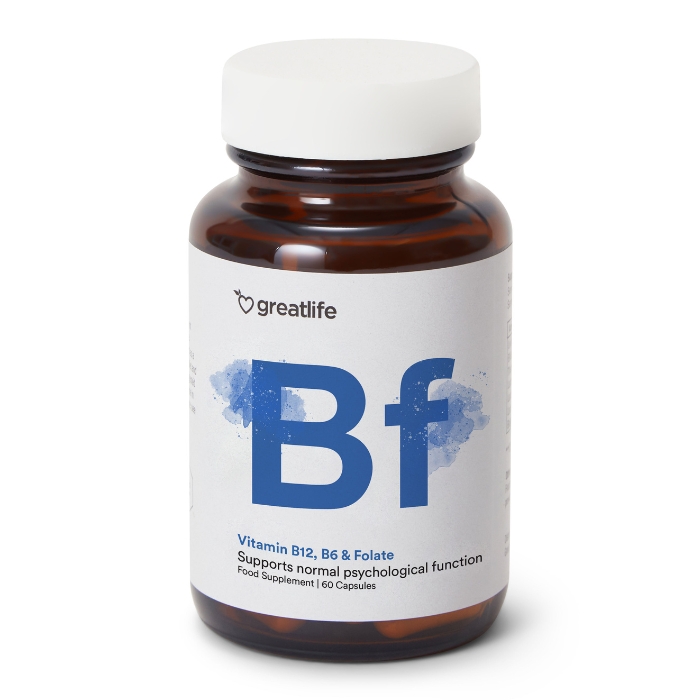 Vitamine B12, B6 & folate de Greatlife est une combinaison soigneusement formulée et bien étudiée de vitamines B bioactives de la plus haute qualité. Le produit contient de la vitamine B12 sous forme de méthylcobalamine, de la vitamine B6 sous forme de Pyridoxal-5′-phosphate (forme active) ainsi que du folate sous forme de Quatrefolic® (5-MTHF), la forme biologiquement active du folate. Ces vitamines jouent un rôle central dans le métabolisme énergétique de l’organisme, le fonctionnement du système nerveux et la formation des globules rouges. Elles contribuent également à une fonction psychologique normale et à la réduction de la fatigue et de l’épuisement. Vitamine B12, B6 & folate de Greatlife est un complément alimentaire de haute qualité, élaboré à partir de matières premières soigneusement contrôlées, sans additifs, contaminants ni substances artificielles.